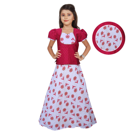 Cotton Pattu Pavadai Sattai with Puff Sleeve Top