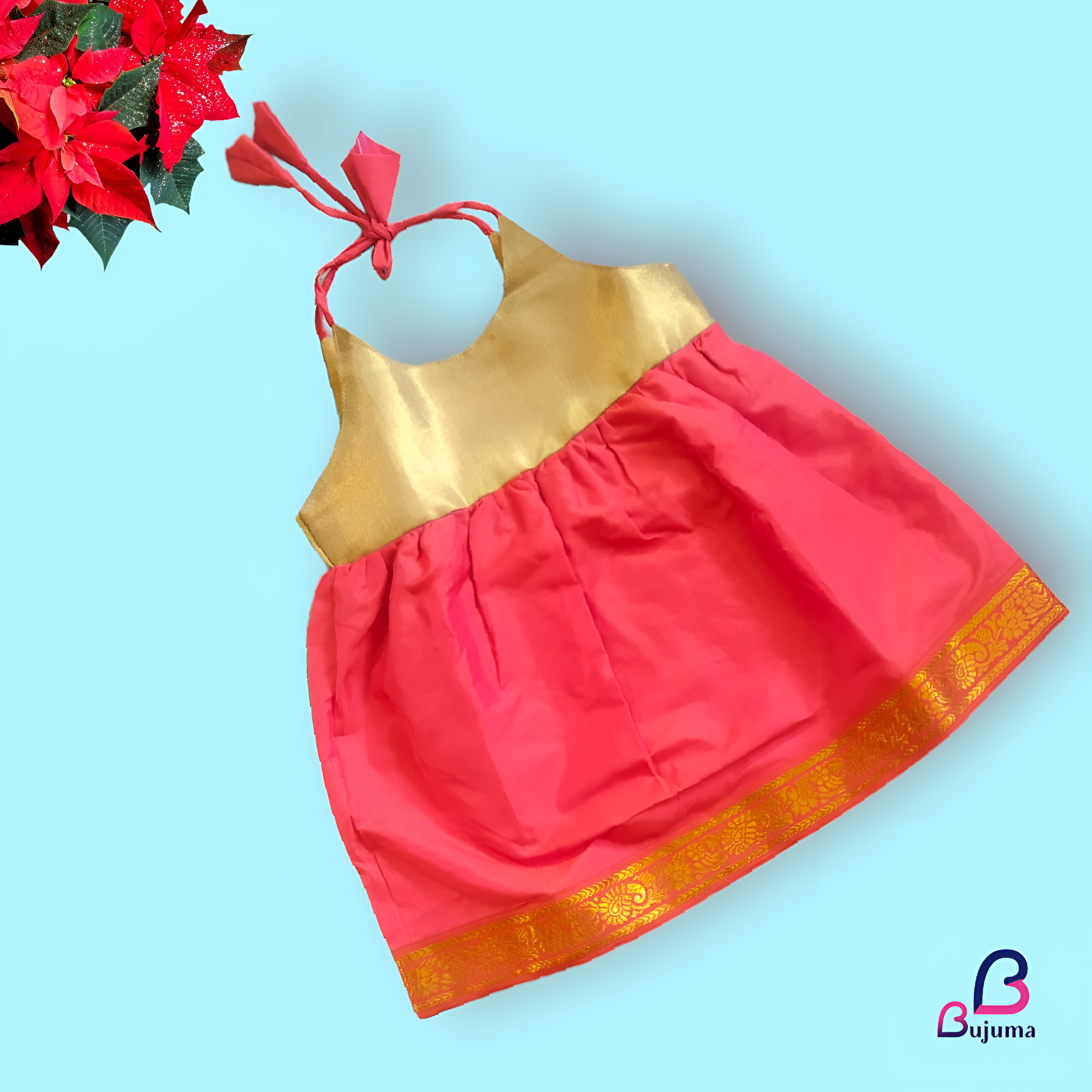 Dress your bundle of joy in enchanting style with our adorable golden with orange frock for babies. A perfect blend of cuteness and elegance for your little one's special moments.