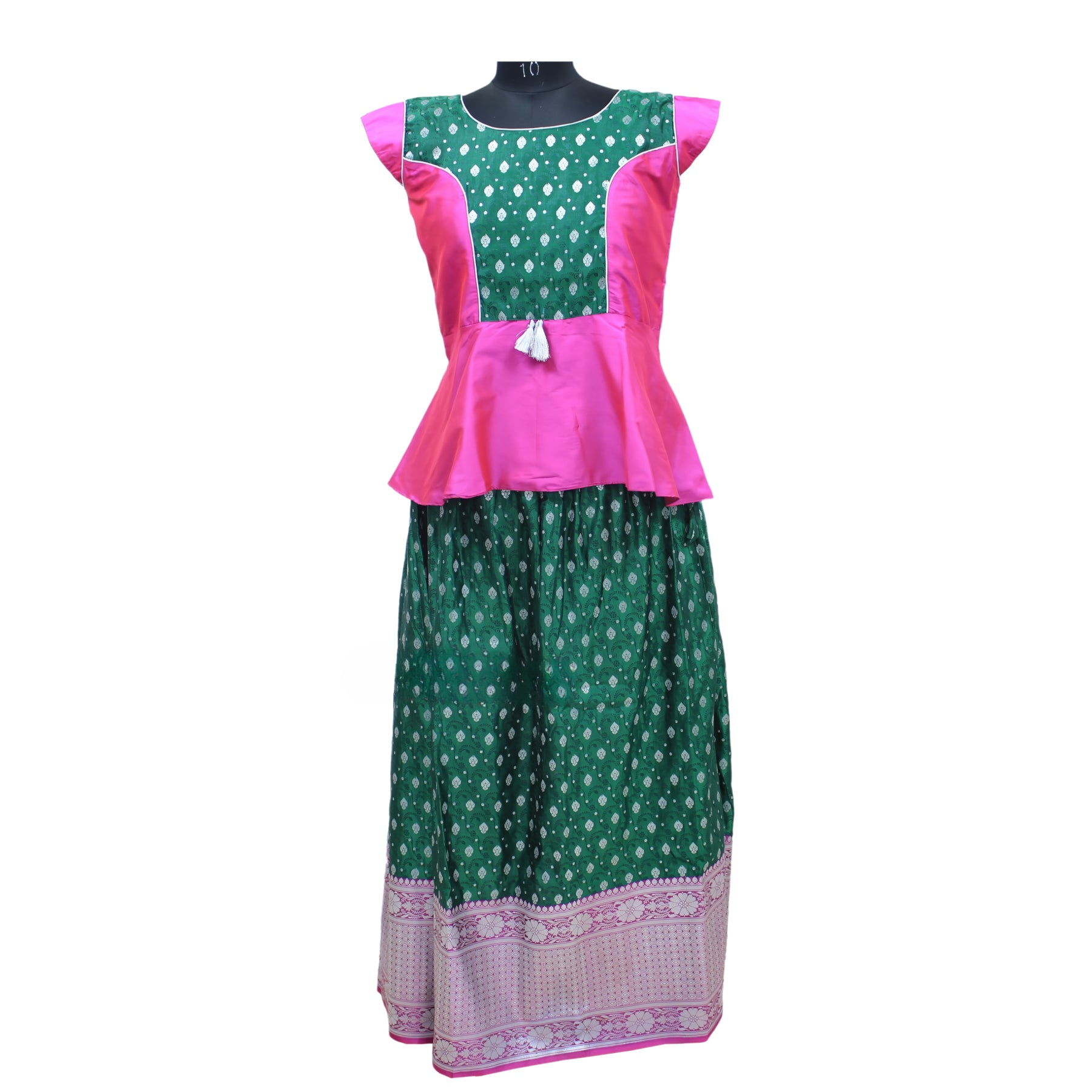 BANARASI PINK AND GREEN PATTU PAVADAI