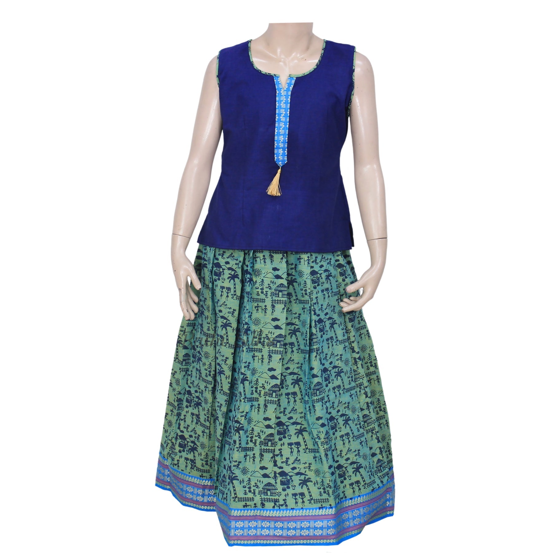 Beautiful Blue Pure Cotton Pattu Pavadai