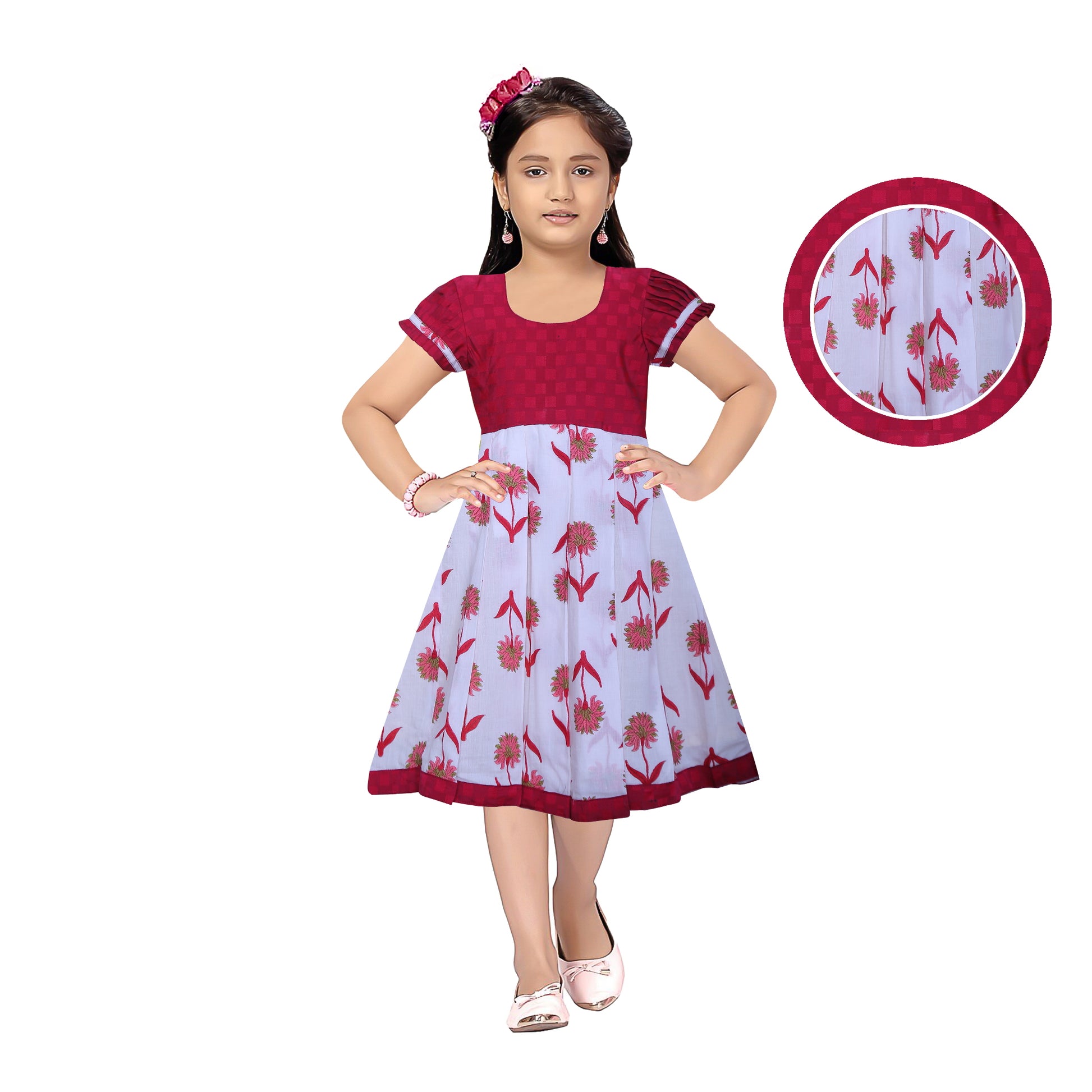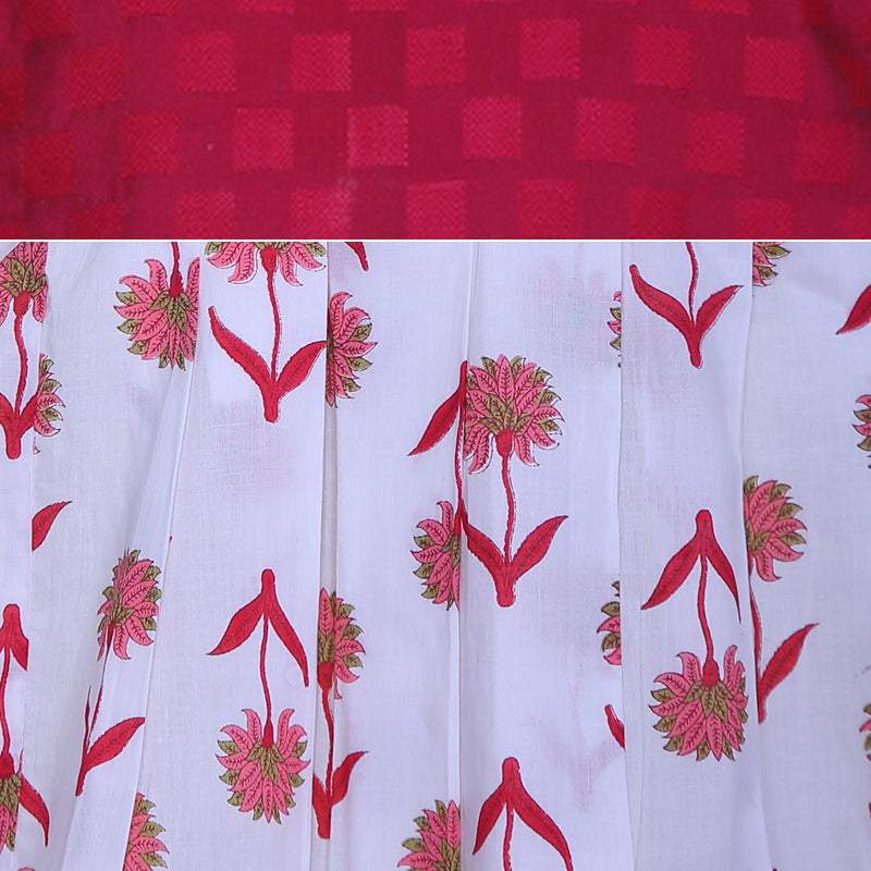 Embrace Timeless Beauty with our Carmine Red Gown Frock Accented by Pure White, a Captivating Blend of Passion and Purity