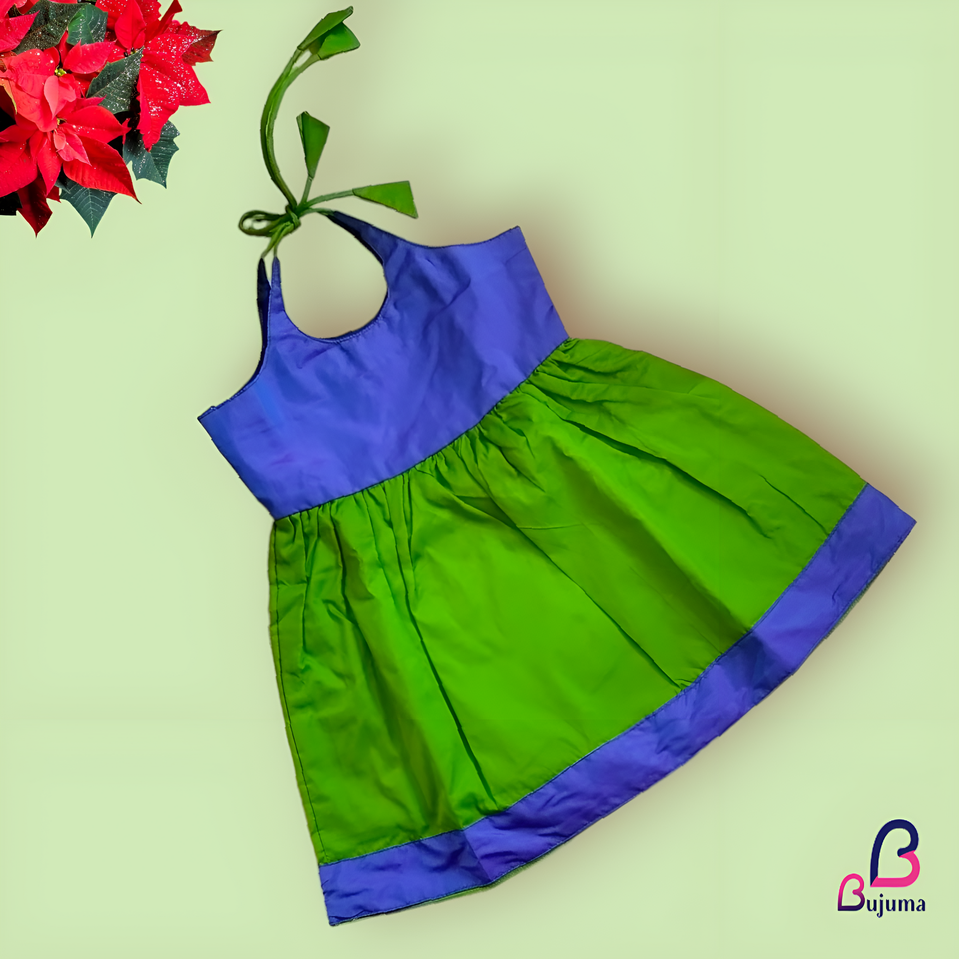 Elevate your baby girl's charm with our dark blue with green silk frock. Unveil a perfect blend of sophistication and cuteness for every precious moment.
