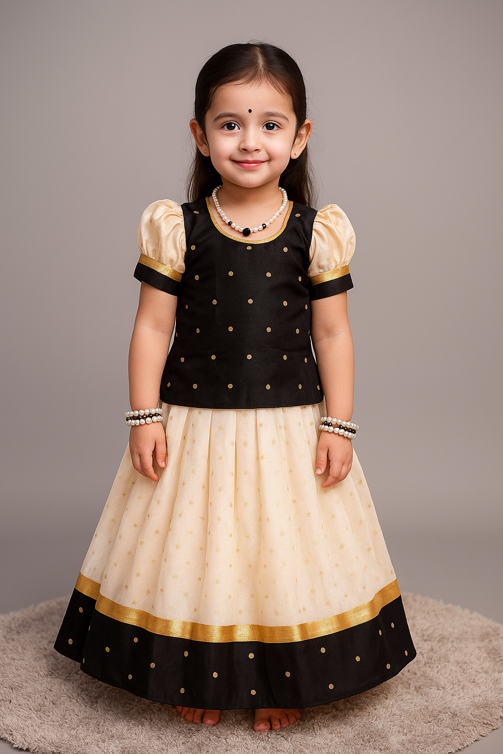ELEGANT CREAM & BLACK PATTU PAVADAI