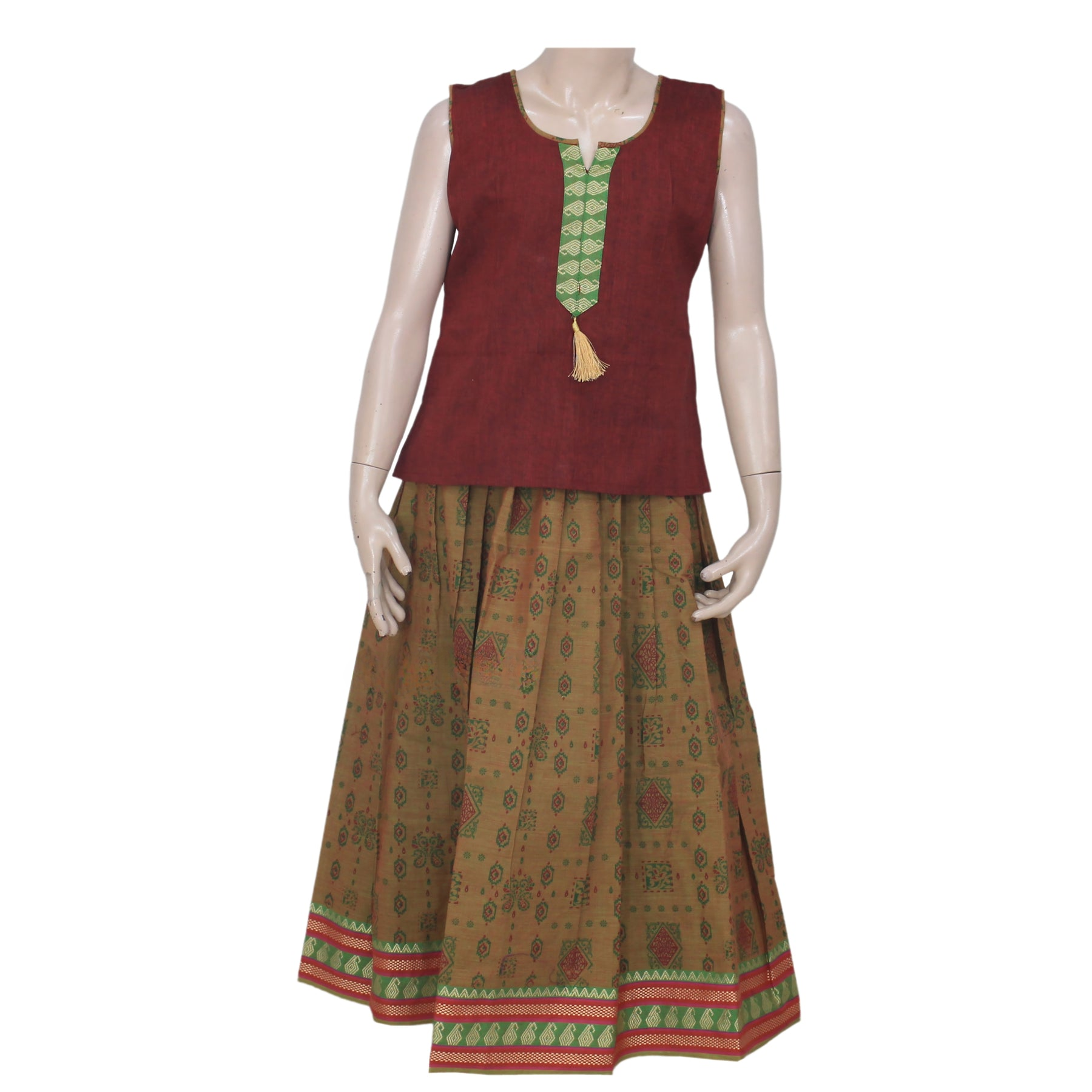 Elegant Maroon Pure Cotton Pattu Pavadai