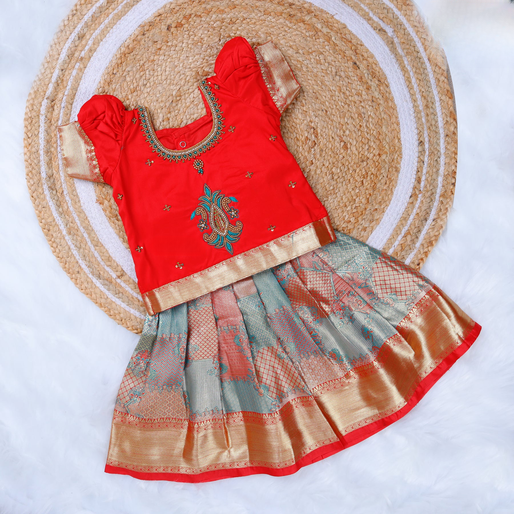 Elegant Red Designer with Gold Zari Border Pattu Pavadai
