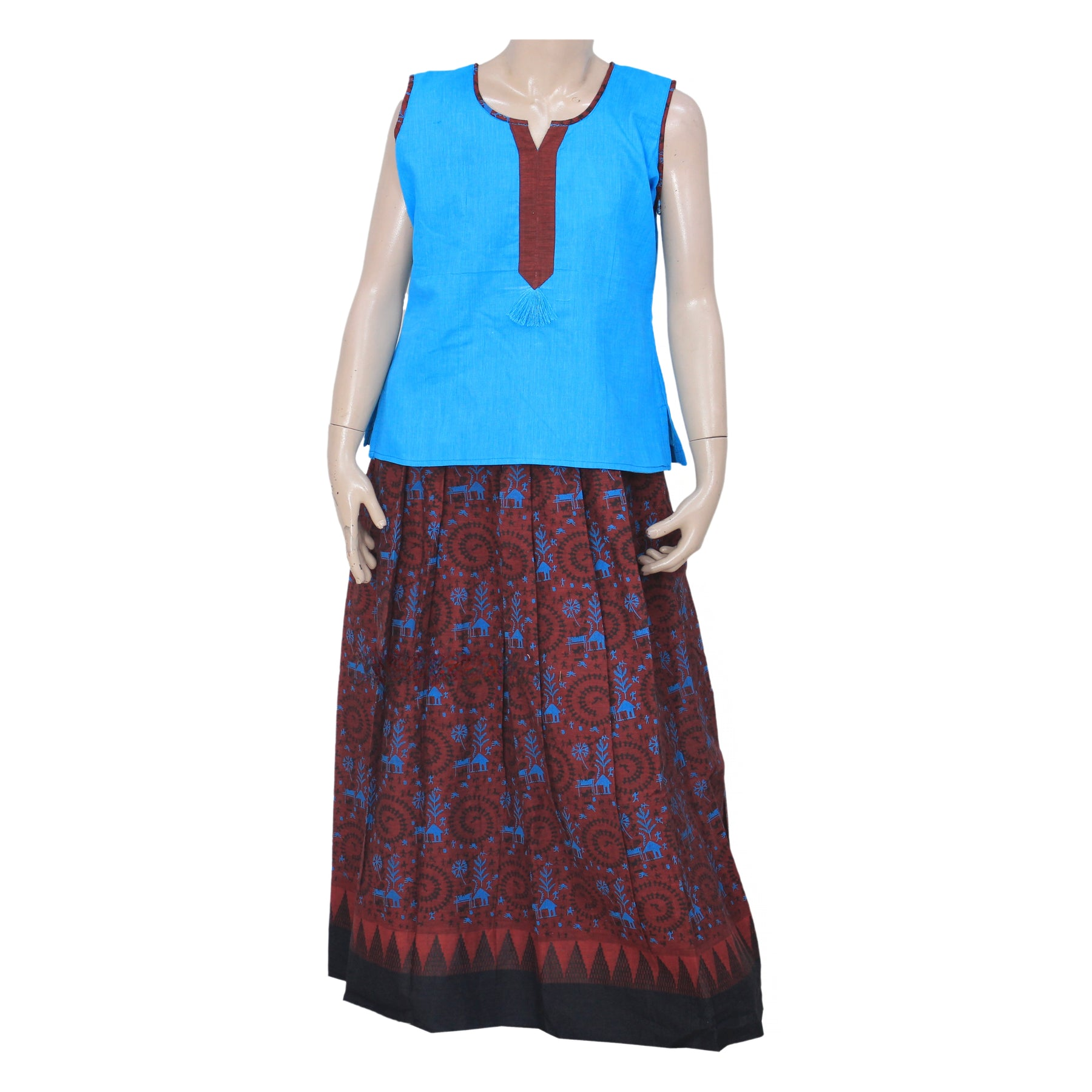 Elegant Sky Blue Cotton Pattu Pavadai Sattai