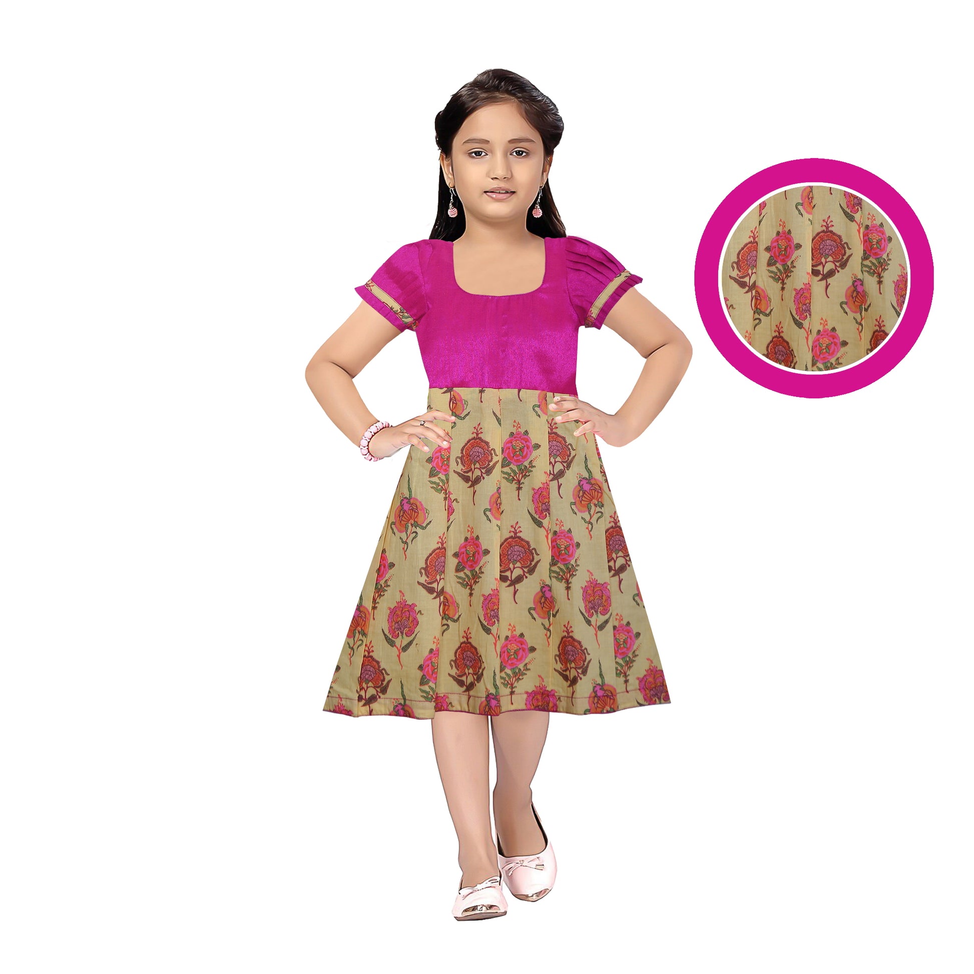 Look Gorgeous in this Beautiful Hot pink with yellow frock