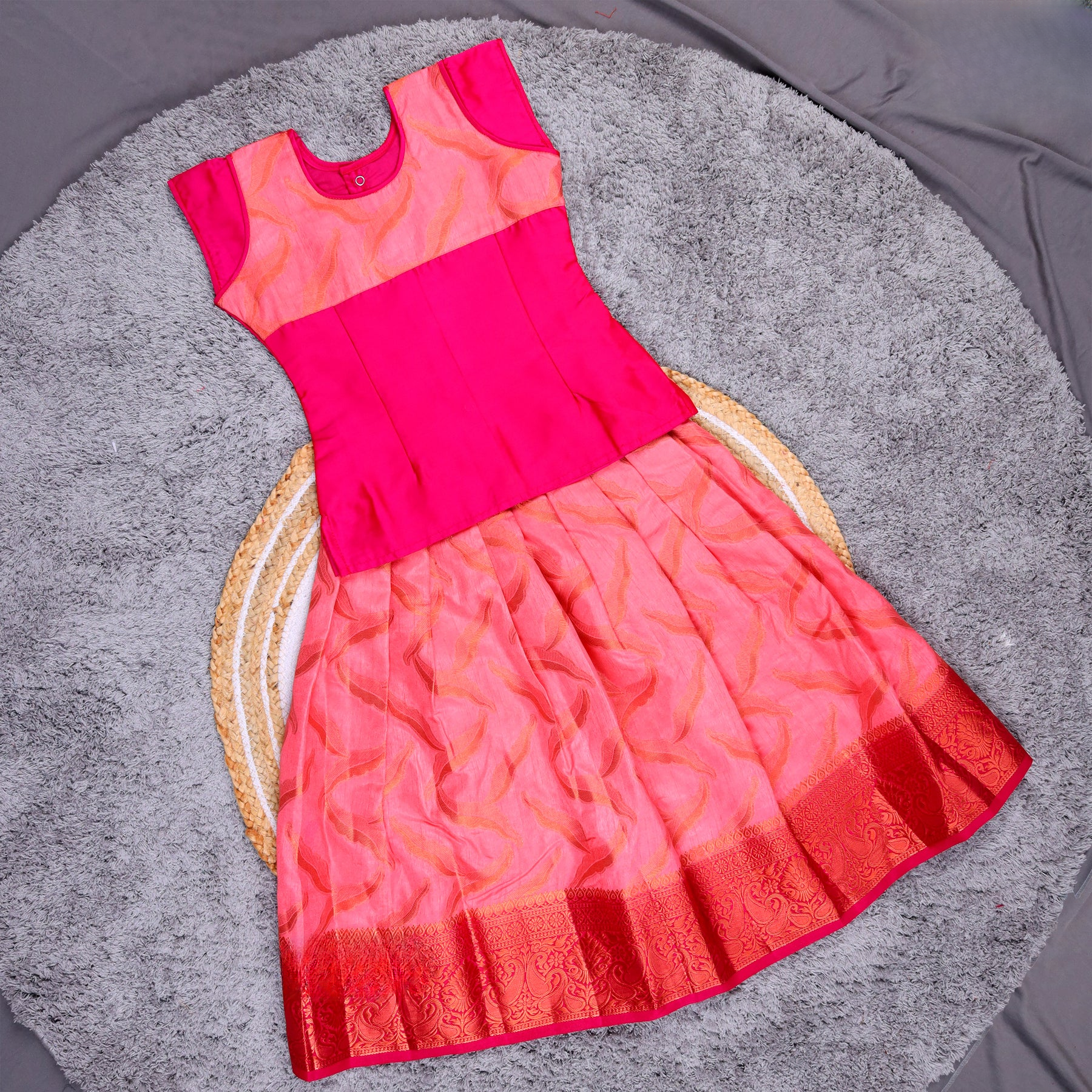 TRADITIONALPEACH PATTU PAVADAI