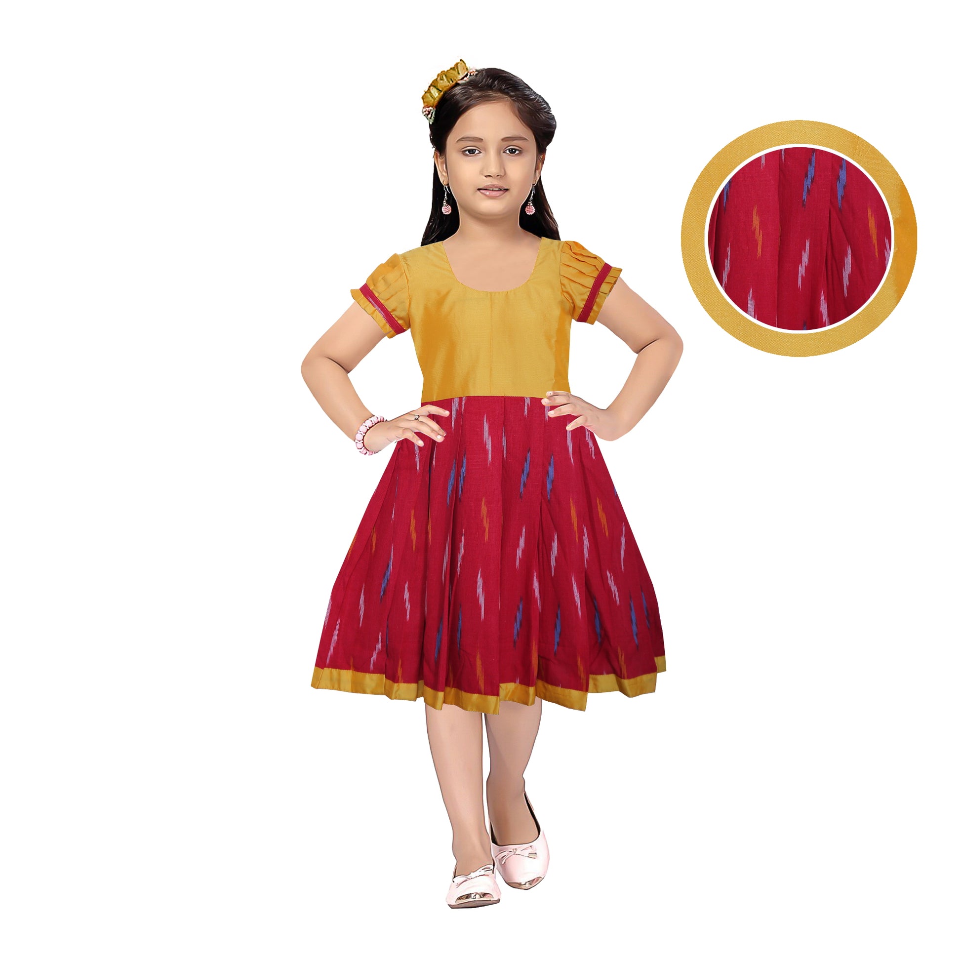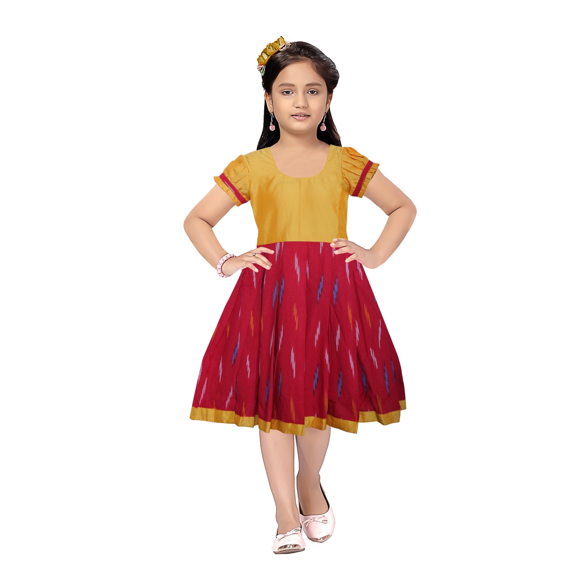 Dress your little one in style with our trendy Yellow and Red Ikat frock for babies. Elevate their fashion quotient with vibrant colors and comfortable design, perfect for making a statement!